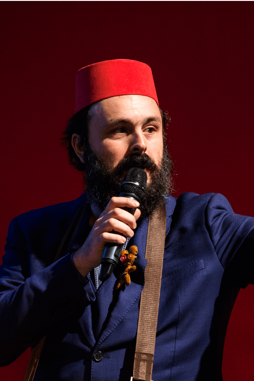Действие с экрана будет переходить на сцену и далее в зрительный зал, а еще до начала представления в фойе зрители смогут принять участие в производстве реквизита и таким образом стать частью мира Картонии и Жюль Верна.